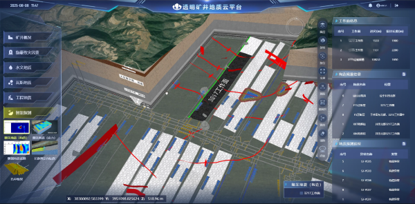 该技术基于地质、水文、钻探、物探数据构建煤矿三维地质模型,接入随采随掘、微震-电法监测等监测数据,能够实时提供采掘前方地质预测预报,给采掘生产安全提供数据支撑。