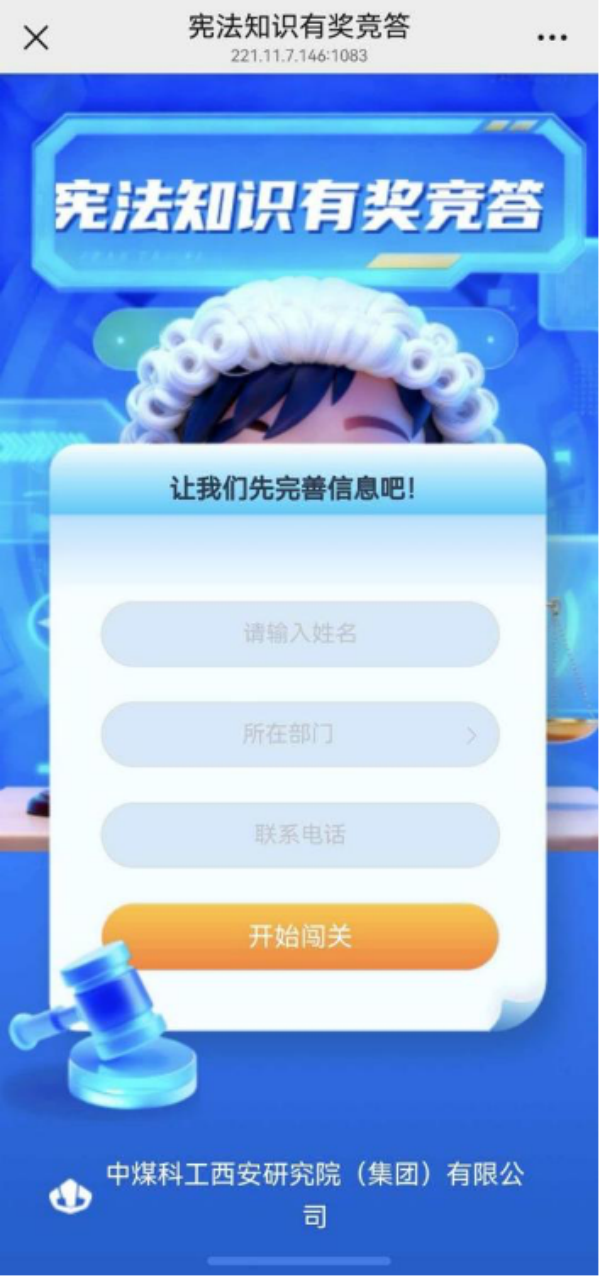 组织全院职工开展宪法知识有奖竞答活动,总计584名职工参与了线上答题活动,其中满分率38%,寓教于乐,让职工在闯关答题中了解更深入地了解宪法。
